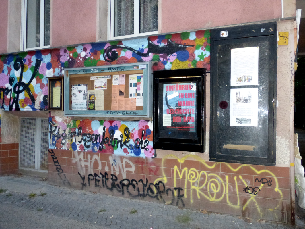 Hier seht ihr einen in die Hauswand vor dem REGENBOGEN KINO integrierten Schaukasten, indem auch unser Plakat seinen Platz fand. Am 6. + 7.9.2019 wurde unser Film in dieser ehemals besetzten Fabrik gezeigt. Ich war sehr erfreut, Angie Welz-Rommel (JG 1981) und meinen Jahrgangskollegen Manfred Hulverscheid (JG 1983) zu treffen. Am ersten Abend kam nach der Vorstellung ein junger Mann auf mich zu und erklärte mir, dass er einer der Darsteller in einem der vielen Ausschnitte gewesen sei. Im Film von Stefan Pethke. Cool: er kam für 1 min. von vor fast 30 Jahren!