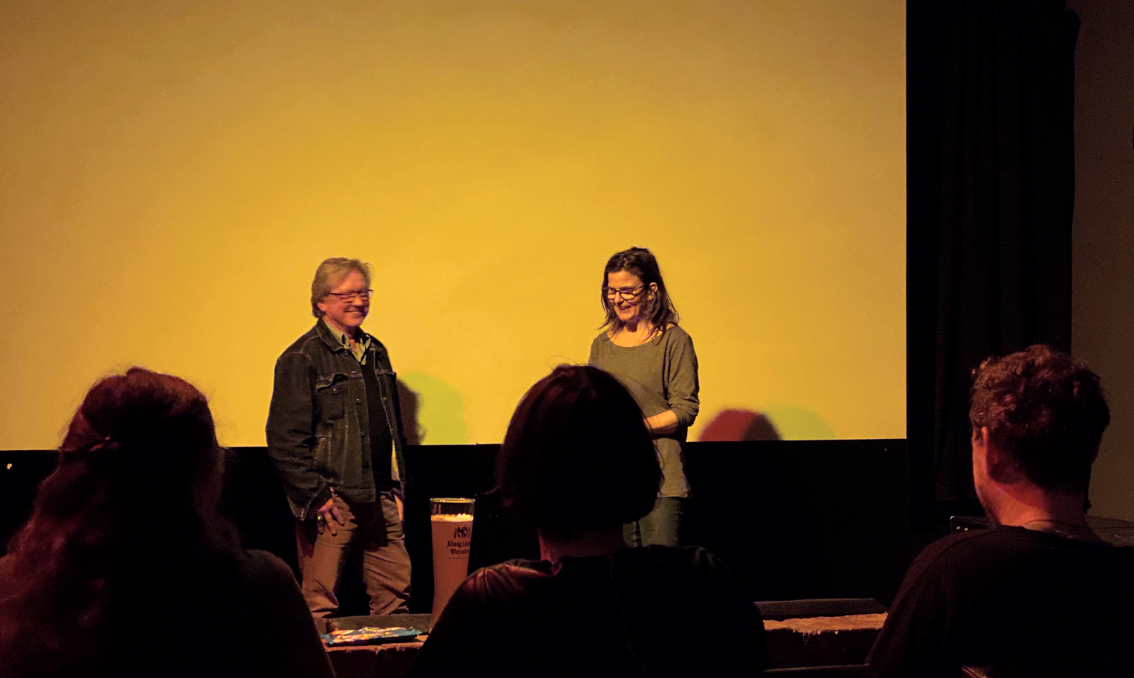 Am 22.2.2020 dann lief unser Film im SPUTNIK KINO, welches ich vor 32 Jahren mit meiner Band MUTTER einweihte und dort lange Jahre gearbeitet hatte. Auch hier gab es Studenten der DFFB als Gäste zu begrüßen, Berlinale-Verirrte und the great Francy Fabritz (JG 2013). Auf dem Photo die charmante Sputnik Leiterin Andrea Stosiek.